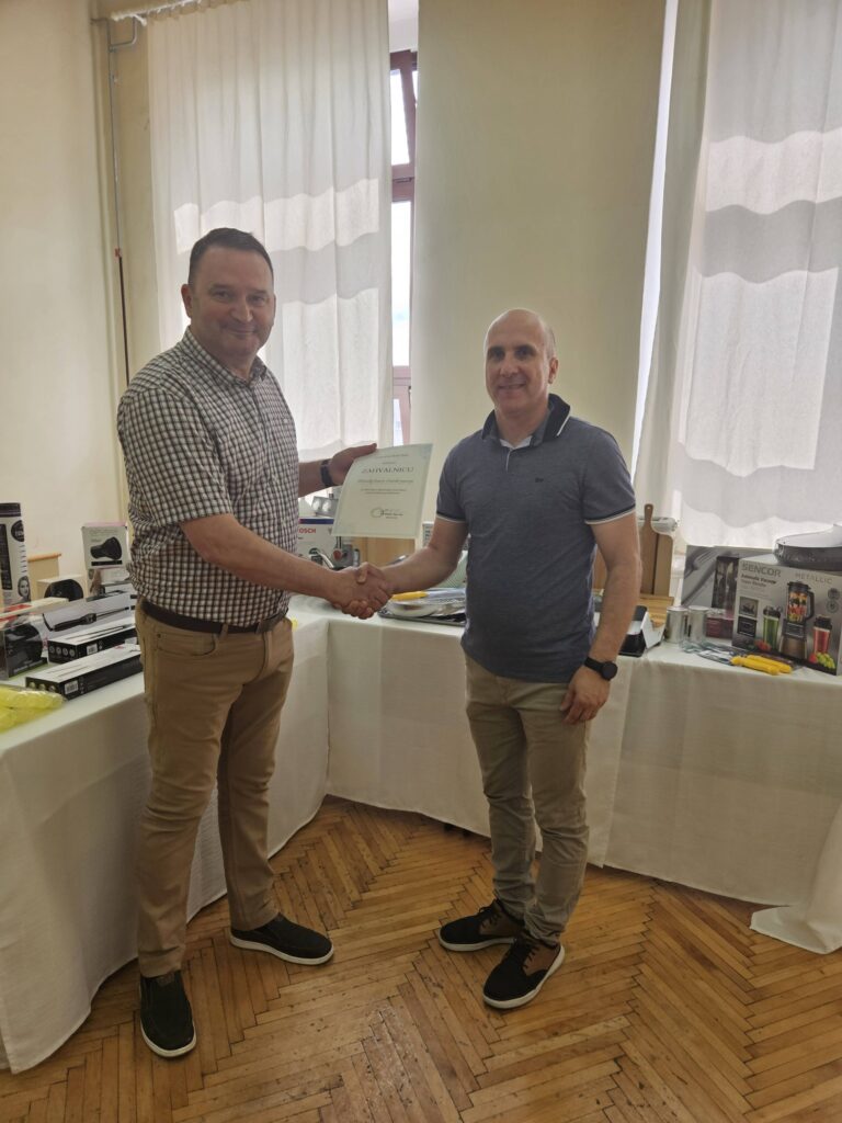 Ravnatelj škole srdačno je dočekao goste i zahvalio Istarskoj županiji i Obrtničkoj komori na odličnoj suradnji tijekom dugog niza godina. Istaknuo je kako su ove godine vrijednim donacijama pomogli sudjelovanje naših učenica frizerki na natjecanju „Majstori ljepote – Dani frizera i kozmetičara HOK-a“, kao i organizaciju Međužupanijskog natjecanja u kategoriji kozmetička njega kada je učenica 4. a razreda Hana Družetić osvojila prvo mjesto i potom treće na državnom natjecanju WorldSkills Croatia. Također je zahvalio na vrijednoj donaciji kojom je nabavljena oprema za frizerski i prehrambeni praktikum uručivši zahvalnicu predsjedniku Obrtničke komore Istarske županije Robertu Momiću.